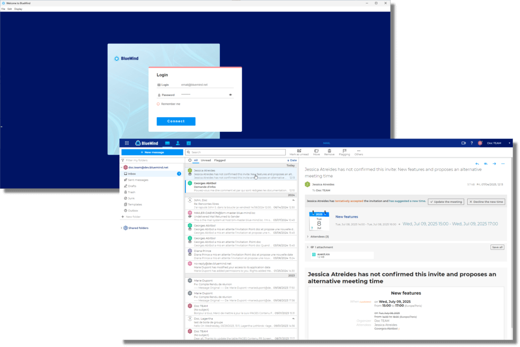 Ein neuer Desktop-Client ermöglicht zudem die Nutzung von BlueMind unabhängig vom Browser, mit direktem Zugriff auf den Zertifikatsspeicher des Betriebssystems – ideal für streng gesicherte Umgebungen.