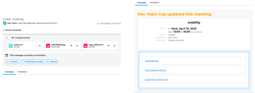 Native Outlook compatibility continued to progress in the same direction. Delegation handling and collaborative scheduling now work seamlessly between Outlook and BlueMind, and videoconferencing can be added directly from Outlook.